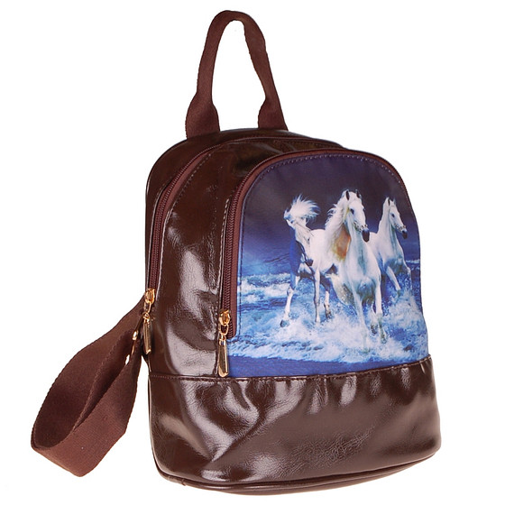 Klein handzaam rugzakje voor meisjes en dames met een mooie foto van een paard.