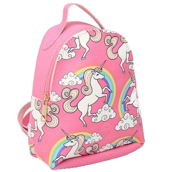 Lief roze rugzakje met afbeeldingen van eenhoorns.