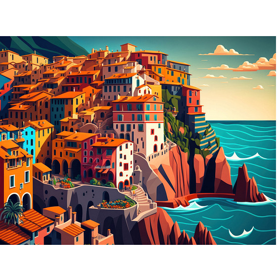 Schilderen op Nummer Set - Mediterraans Stadje aan Zee - incl. Verf & Penselen / excl. Lijst - 30x40cm