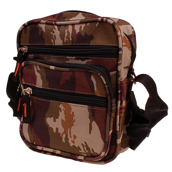 Deze camouflage schoudertas heeft 5 met rits afgesloten vakken.