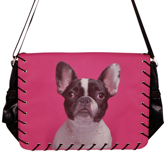 Mooie handzame schoudertas met een afbeelding van een bulldog.