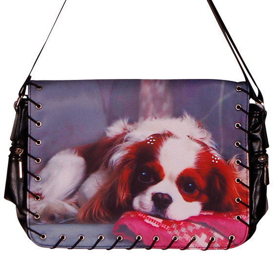 Mooie handzame schoudertas met een afbeelding van een hond.