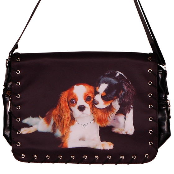 Mooie handzame schoudertas met een afbeelding van een hond.