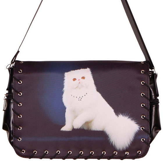 <p>Mooie handzame schoudertas met een afbeelding van een poes.<br />Deze tas heeft een flap met kleine oogjes van metaal waardoor een veter is geregen.<br />De flap is bedekt met een soepele maar stevige stof en heeft een magneetsluiting.<br />Op de stof staat een hoogwaardige fotorealistische afbeelding.<br />De zwarte stevige schouderband is verstelbaar.</p>