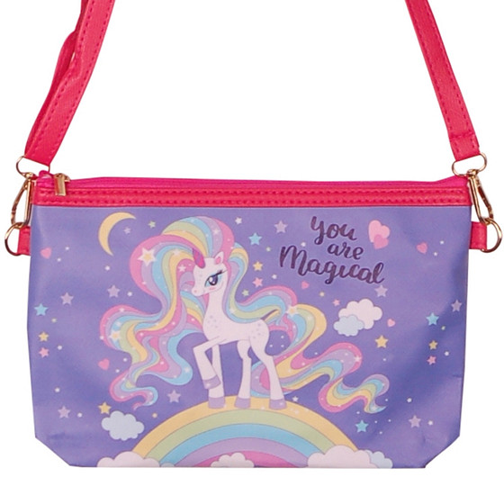 Speels schoudertasje voor meisjes met een afbeelding van eenhoorns.