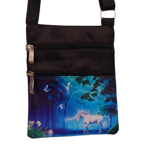 Schoudertasje - Eenhoorn/Unicorn Magisch Bos Vogels & Bloemen - Zwart - Verstelbaar - 19x14,5cm