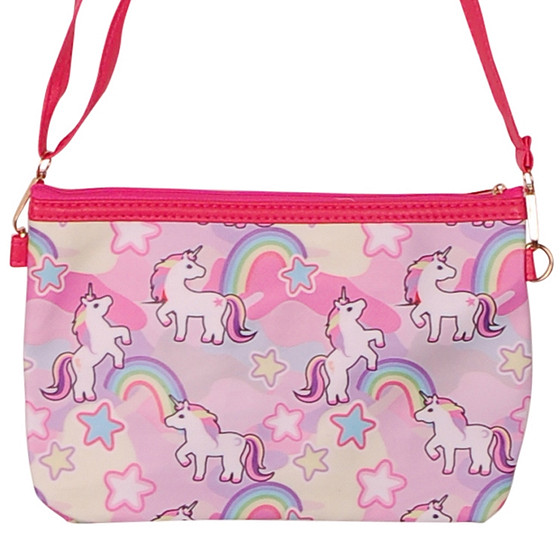 Speels schoudertasje voor meisjes met een afbeelding van eenhoorns.