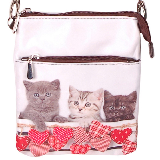 Speels schoudertasje voor meisjes met een afbeelding van poesjes.