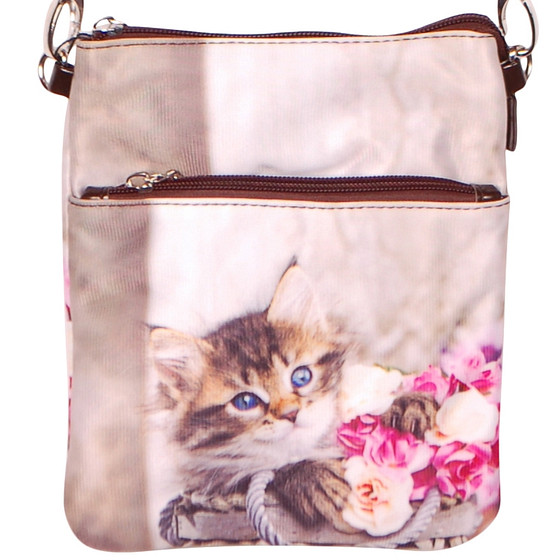Speels schoudertasje voor meisjes met een afbeelding van een poes.