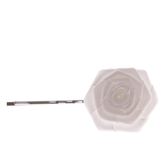 Zilverkleurig schuifspeldje met een ivoorkleurig roosje.