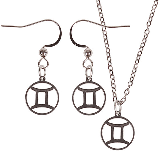 Set - Ketting 55cm - Oorbellen Zilverkleurig - hanger sterrenbeeld Tweelingen