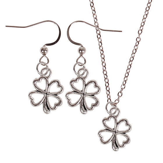 Set - Ketting 55cm - Oorbellen Zilverkleurig - Hangertje Klavertje vier zilverkleurig 1,5cm