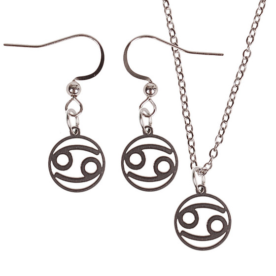 Set - Kinderketting 45cm - Oorbellen Zilverkleurig - hanger sterrenbeeld Kreeft