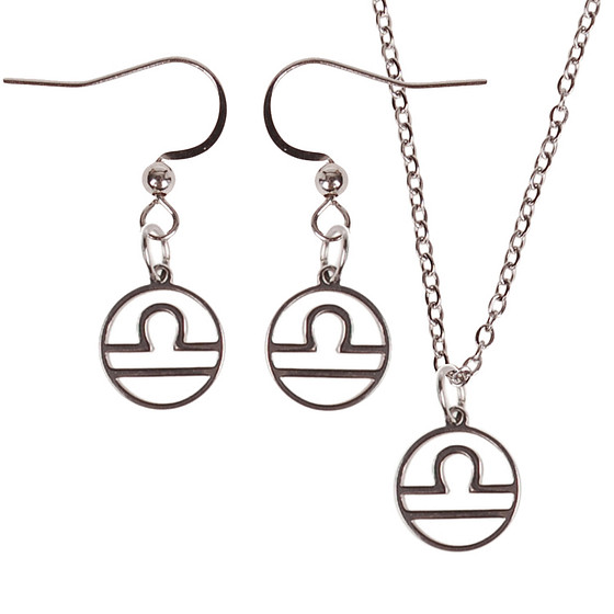 Set - Kinderketting 45cm - Oorbellen Zilverkleurig - hanger sterrenbeeld Weegschaal