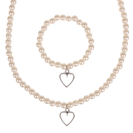Set - Kinderketting en armbandje - ivoorkleurige immitatieparels 6mm - Hangertje Hartje zilverkleurig 1,2cm