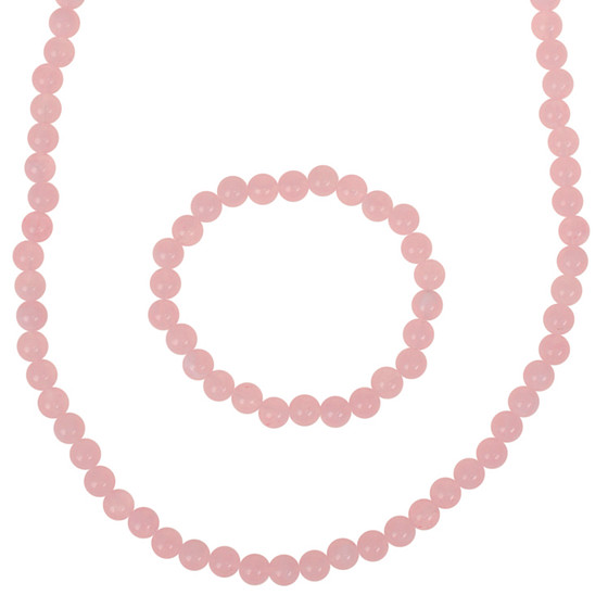 Set - Kinderketting en Kinderarmbandje - Roze gewolkte kraaltjes 6mm - Elastisch