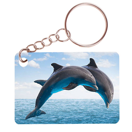 Sleutelhanger 6x4cm - 2 Dolfijnen in Sprong
