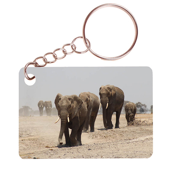 Sleutelhanger 6x4cm - Olifanten Groep op Savanne