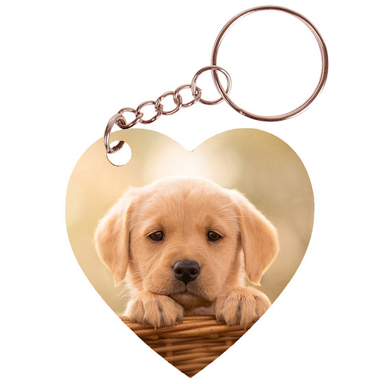 Sleutelhanger hartje 5x5cm - Golden Retreiver Pup in Mand