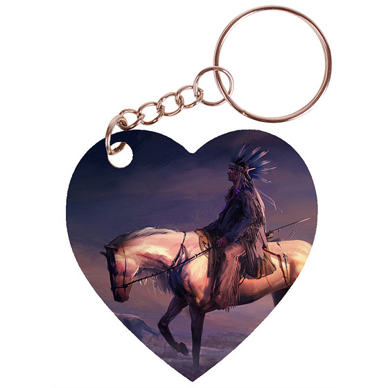 Sleutelhanger hartje 5x5cm - Indiaan met Wolven op Vlakte - Illustratie