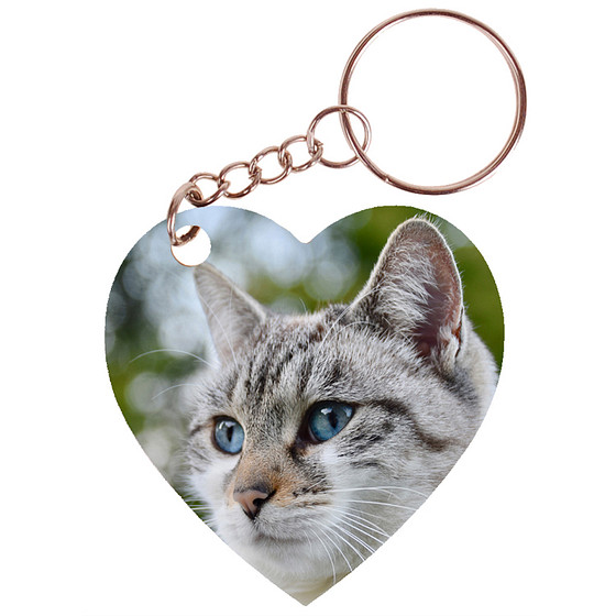 Sleutelhanger hartje 5x5cm - Poes Wit/Tijger met Blauwe Ogen