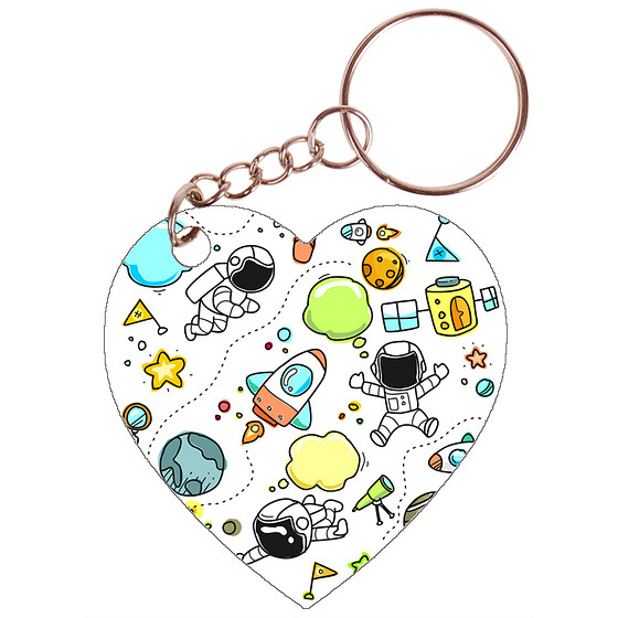 Sleutelhanger hartje 5x5cm - Ruimte Astronaut - Planeten - Raketten getekend