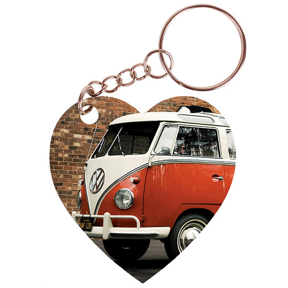 Sleutelhanger hartje 5x5cm - T1 - Samba bus Rood - Oldtimer