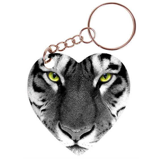 Sleutelhanger hartje 5x5cm - Tijgerkop Zwart/Wit met gekleurde Ogen