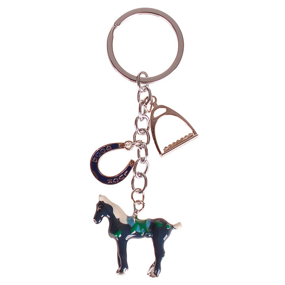 Sleutelhanger - Paard met Hoefijzer en Stijgbeugel - Emaille Blauw/Groen - 4x3,5cm
