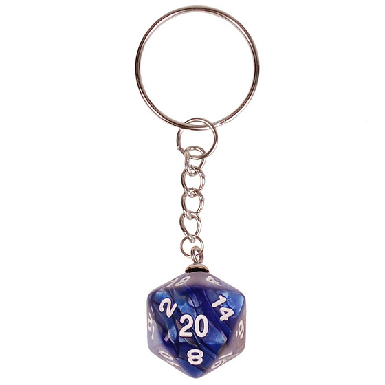 Sleutelhanger/Tashangertje - Zilverkleurige Sleutelring - DnD D20 dobbelsteen blauw/grijs
