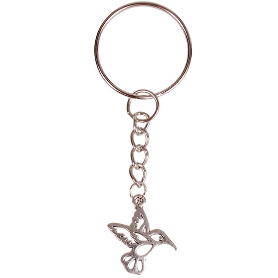 Sleutelhanger - Zilverkleurige Sleutelring - Hangertje Kolibrie zilverkleurig 1,8cm