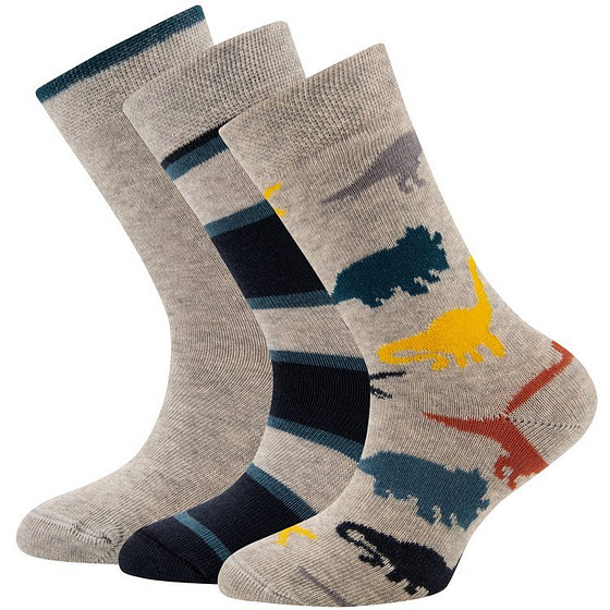 Sokken Jongen - Set met 3-paar - Grijs/Blauw - Dinos/Effen/Strepen - Ewers