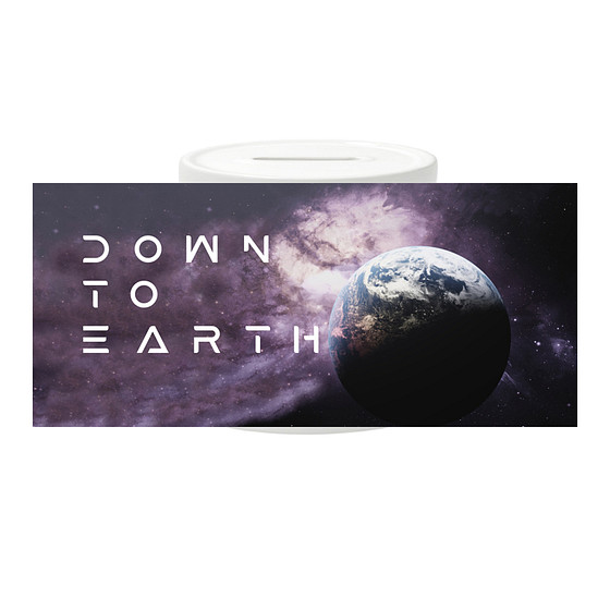 De witte aardewerk spaarpot heeft een doorsnede van 8cm en is 9,5cm hoog.