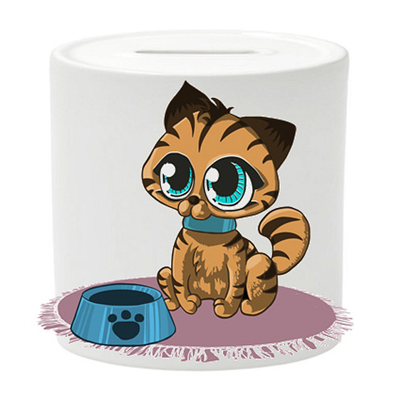 Spaarpot - Poesje met Voerbak Grote ogen - Getekend