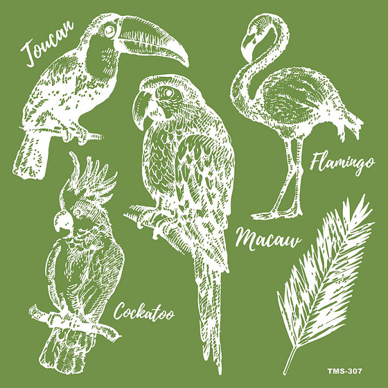 Leg de mal op bijvoorbeeld papier, hout, textiel, etc en tamponeer met een kwast en verf de vormen op de ondergrond. De stencilvellen zijn afwasbaar en herbruikbaar.