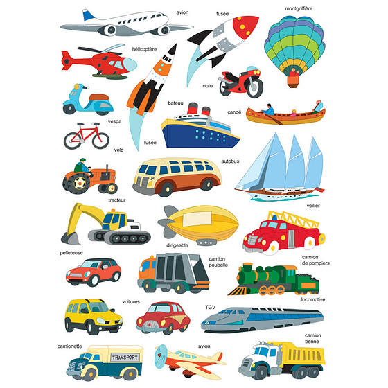 Stickers - Transport - Vrachtwagen/Boot/Auto/Vliegtuig/Raket - Scrapbook Hobby DIY - 2 Stickervellen - 2.5-7.5cm - 50 Stuks