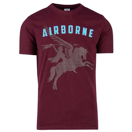 Prachtig wijnrood t-shirt met het Airborne Pegasus embleem.