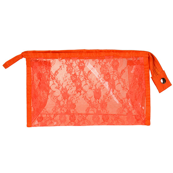 Toilettas - Transparant & Oranje Kant - Ritssluiting - 15x25x8cm