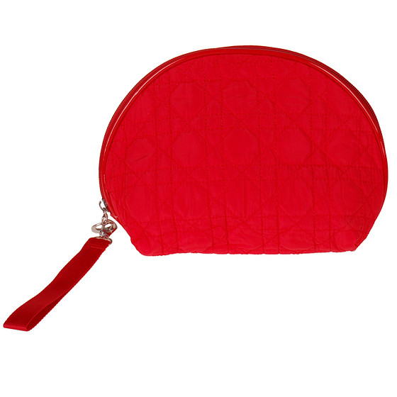 Handzame toilettas met een iets gewatteerde stof. Het stijlvolle halfronde tasje is voorzien stiksels en afgewerkt met biesjes langs de rits. De zilverkeurige ronde metalen ritstrekker geeft ruimte voor een roterend clipje en een stoffen handgreep. Toilettasje is aan de binnenkant gevoerd, het binnenvak is voorzien van 1 extra vakje.