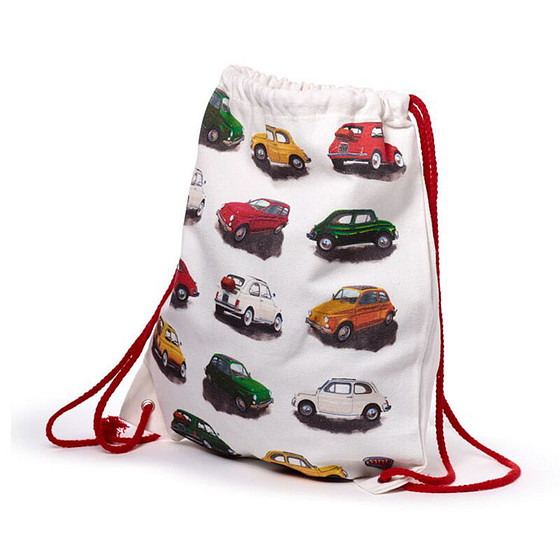 Trekkoordtas/Rugtas - Fiat 500 Retro Classic Oldtimers - Geel&Rood&Wit&Groen - Canvas - 42x33cm