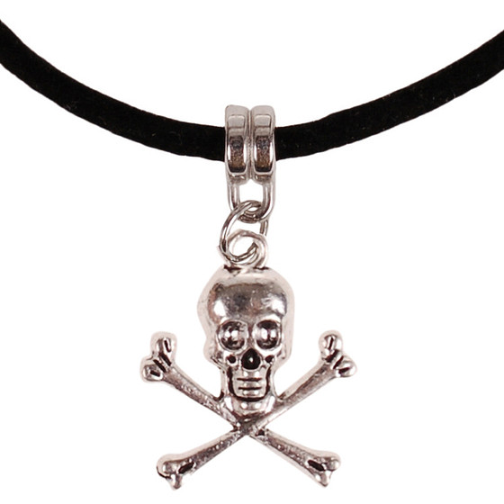 Veterketting Zwart Fluweel - Zilverkleurige Sluiting - 45cm - hanger schedel