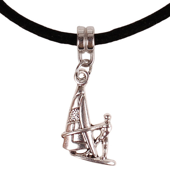 Veterketting Zwart Fluweel - Zilverkleurige Sluiting - 45cm - hanger Windsurfer