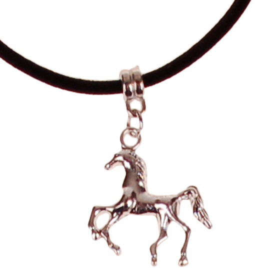 Veterketting Zwart Fluweel - Zilverkleurige Sluiting - 45cm - Hangertje Paardje Zilverkleurig 2,5cm