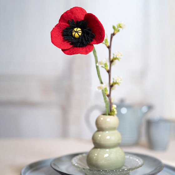 Vilt Bloem - Klaproos Rood Poppy - 40cm - Fairtrade Homedecoratie