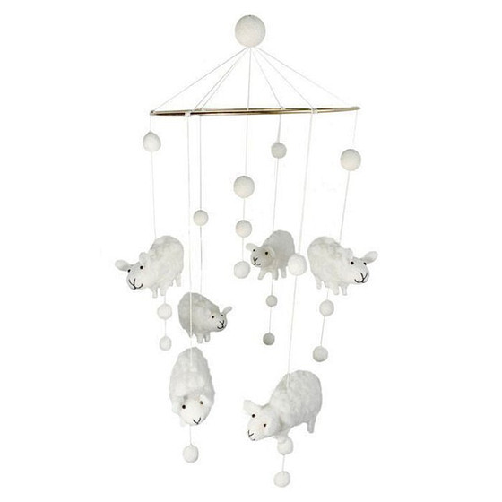 Vilten mobiel met schaapjes van wol.