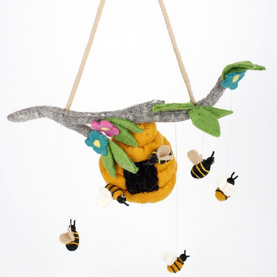Vilten mobiel Bijenkorf met Bijtjes - 19x50cm