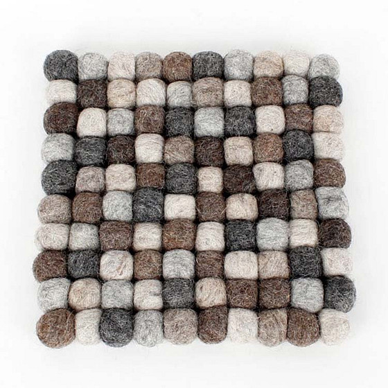Onderzetter vierkant met bolletjes van Wolvilt in diverse grijstinten. 100% gemaakt van natuurlijke en hernieuwbare materialen. Deze onderzetter is circa 20x20cm groot. Hierdoor heel geschikt om een warme pan op te zetten. Maar ook ter decoratie van een interieur. Zet bijvoorbeeld een mooie schotel of vaas op deze stijlvolle onderzetter!