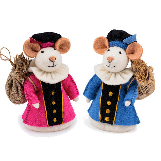 Vilten Pietermuizen Blauw en Fuchsia - 18cm