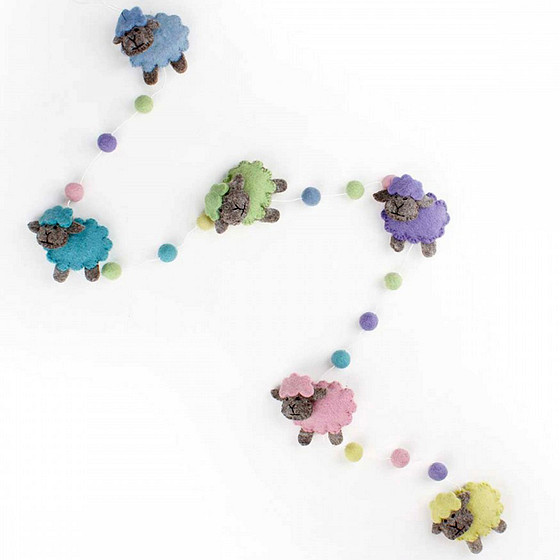 Viltslinger Schaapjes en Bolletjes Pasteltinten - Verticaal -127cm Van Sjaal met Verhaal.