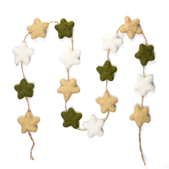 Viltslinger - Sterren Beige/Groen/Wit - Mistletoe - 120cm - Fairtrade
